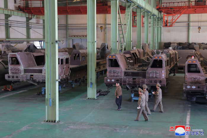 North Korean leader Kim Jong-un (L) visits a defense industrial complex on May 17, 2024, in this photo released by the North's official Korean Central News Agency the next day. (For Use Only in the Republic of Korea. No Redistribution) (Yonhap)