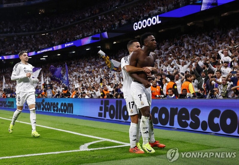 지난 시즌 결승전 때 레알 마드리드의 두 번째 골을 넣었던 비니시우스 주니오르가 이날 후반 17분과 41분, 추가 시간까지 3골을 폭발하며 주인공이 됐다.