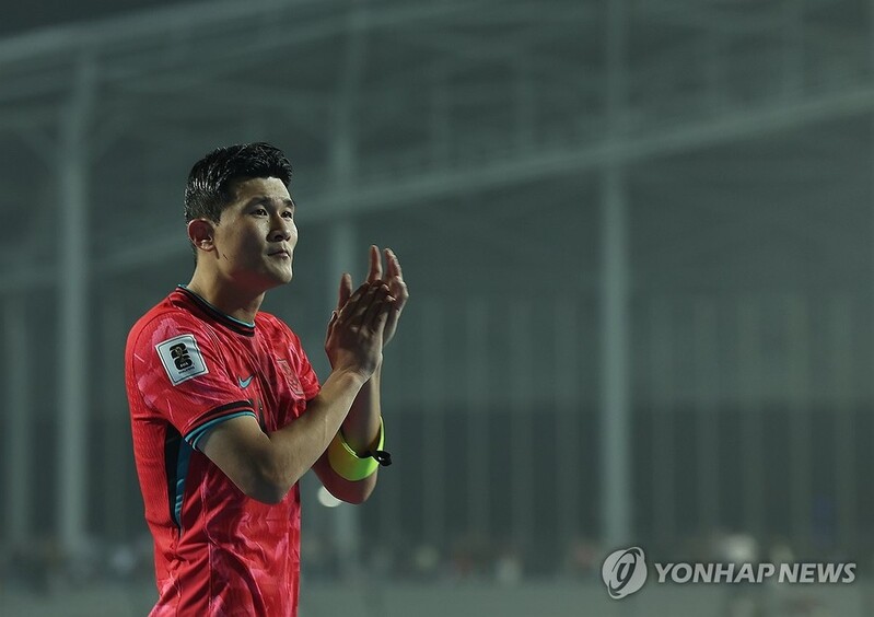 | ▲ 박수치는 김민재 (용인=연합뉴스) 김성민 기자 = 15일 경기도 용인미르스타디움에서 열린 북중미월드컵 아시아 지역 3차 예선 B조 4차전 대한민국 대 이라크의 경기. 한국 김민재가 경기를 마치며 박수를 치고 있다. 2024.10.15 ksm7976@yna.co.kr |