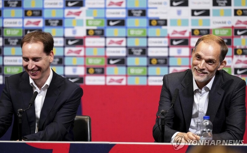 | ▲ 마크 벌링엄 잉글랜드축구협회(FA) 최고경영자(CEO)와 투헬 감독 [John Walton/PA via AP=연합뉴스] |