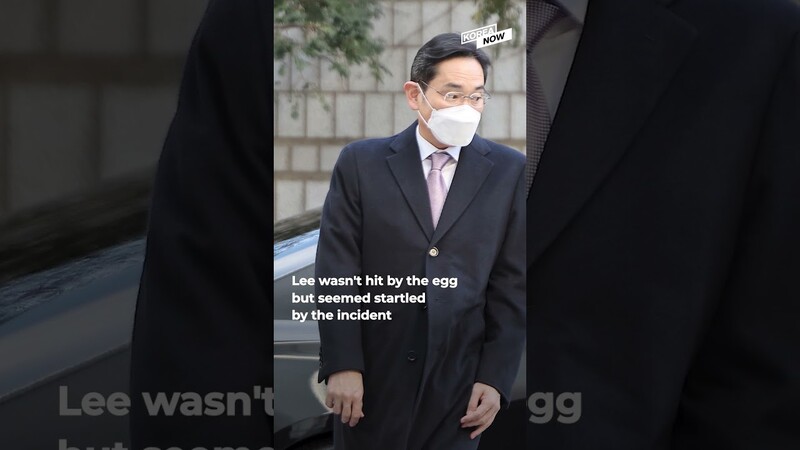 Samgsung chairman Lee Jae-yong almost gets hit by an egg