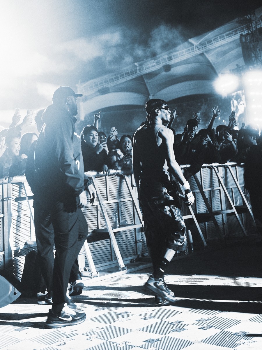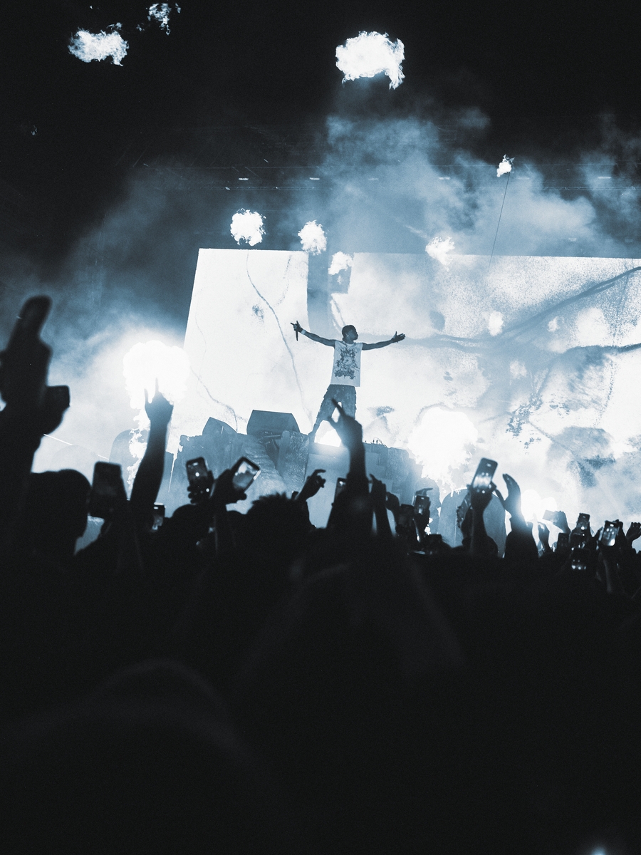 무대에 오른 힙합 스타 트래비스 스콧이 관객들을 향해 목청껏 소리치자, 경기장에 모인 약 4만8천명의 관객은 자극받은 듯 열광적으로 두 팔을 흔들며 뛰어오르기 시작했다.