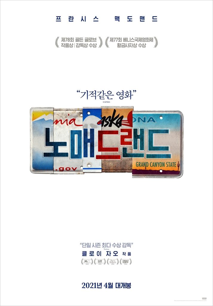 '노매드랜드'는 지난해 베네치아국제영화제 황금사자상을 시작으로 최근 골든글로브 작품상과 감독상을 비롯해 지금까지 세계에서 194개의 상을 받으며 다음 달 열리는 아카데미 시상식에서도 가장 강력한 수상작으로 꼽히는 작품이다.
