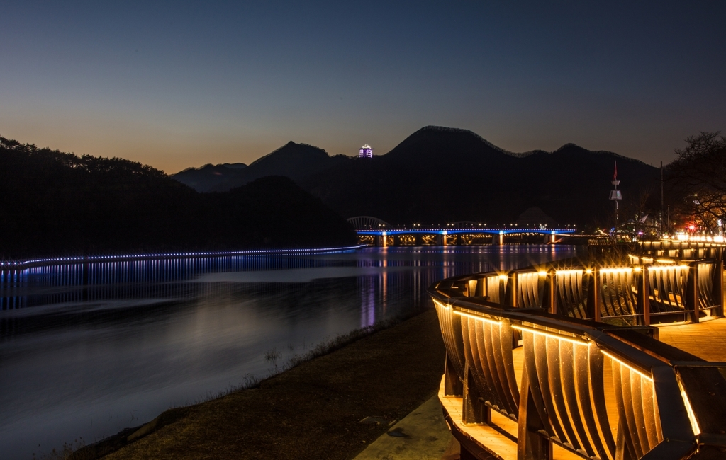 (단양=연합뉴스) 박종국 기자 = 충북의 대표적인 관광도시인 단양이 야경이 아름다운 도시로 변모했다.