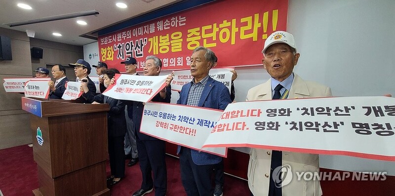 (원주=연합뉴스) 이재현 기자 = 지역 이미지 훼손 논란의 중심에 선 영화 '치악산'의 상영금지 가처분 심문이 오는 8일로 예정된 가운데 원주시 보훈단체협의회 회원들이 4일 영화 개봉 연기를 촉구하고 나섰다.