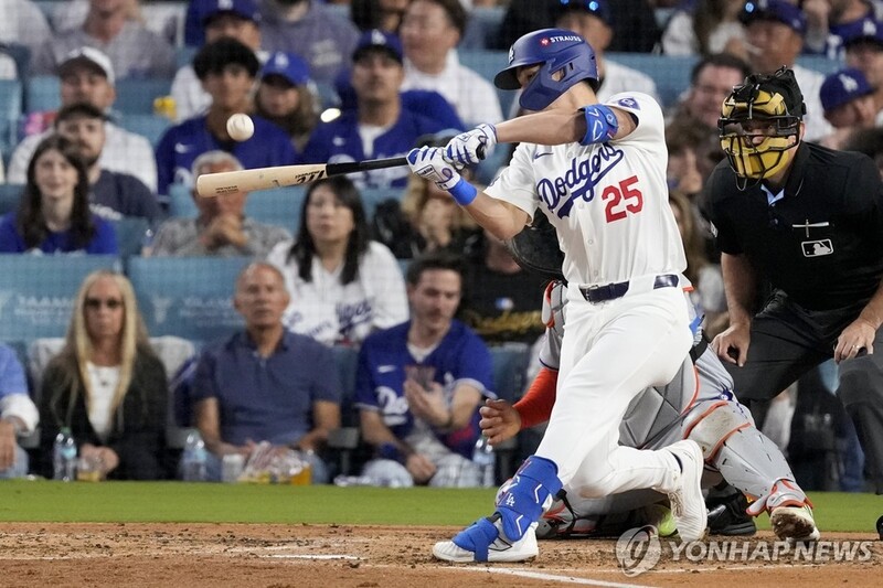 에드먼 4타점…다저스, 양키스와 43년만에 MLB 월드시리즈 격돌