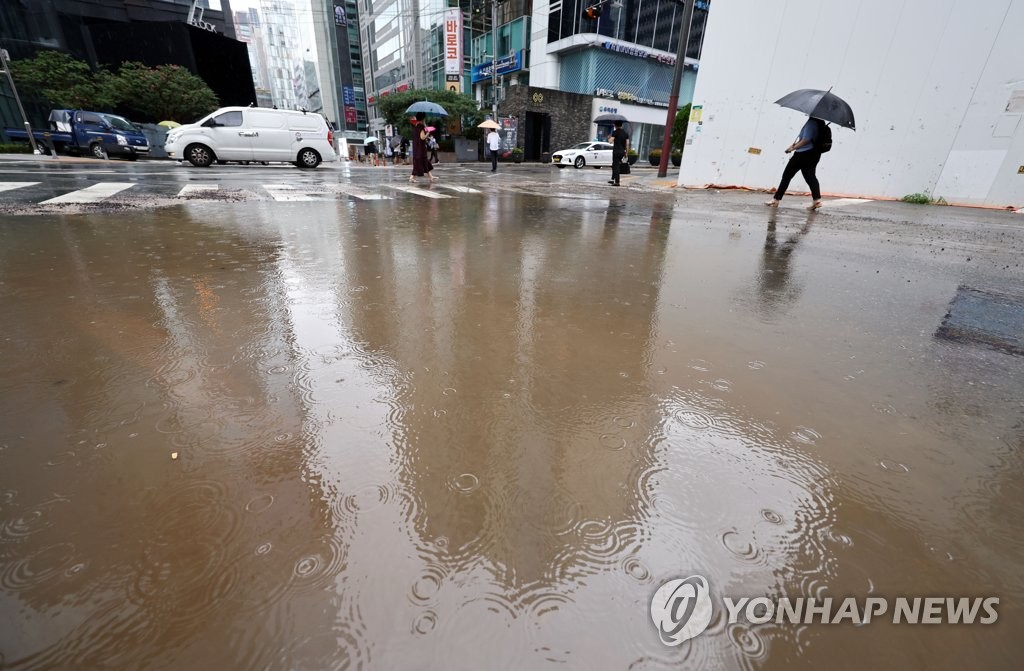 | ▲ 빗물 고인 강남역 도로 (서울=연합뉴스) 김인철 기자 = 9일 오전 서울 강남역 인근의 도로에 빗물이 고여있다. 2022.8.9 yatoya@yna.co.kr |