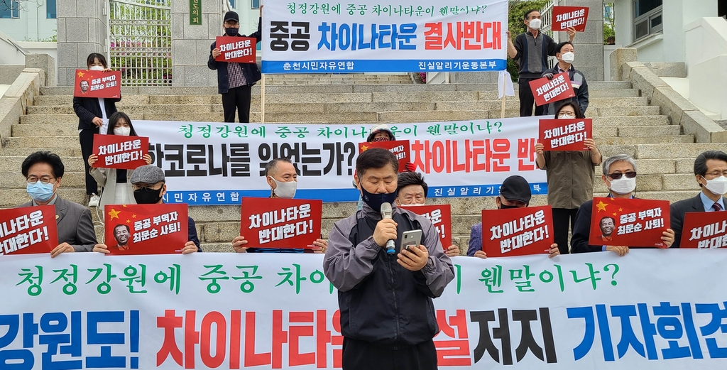 (춘천=연합뉴스) 이재현 기자 = '차이나타운' 논란을 빚고 있는 강원 홍천 일원의 '한중문화타운'과 관련해 보수 시민사회단체가 '동북공정의 교두보'라며 건립 저지와 최문순 강원도지사의 사퇴를 촉구하고 나섰다.