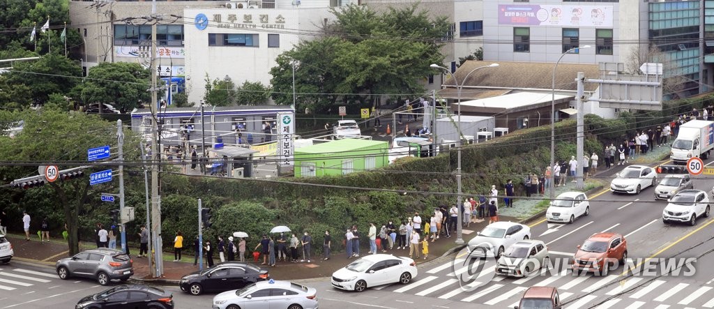 | ▲ 제주보건소에 아침부터 긴 줄 (제주=연합뉴스) 제주지역 신종 코로나바이러스 감염증(코로나19) 확산이 이어진 지난 8월 23일 오전 코로나19 검사를 받으려는 시민들이 제주시 도남동 제주보건소를 둘러싸고 긴 줄을 지어 서 있다. [연합뉴스 자료사진] |