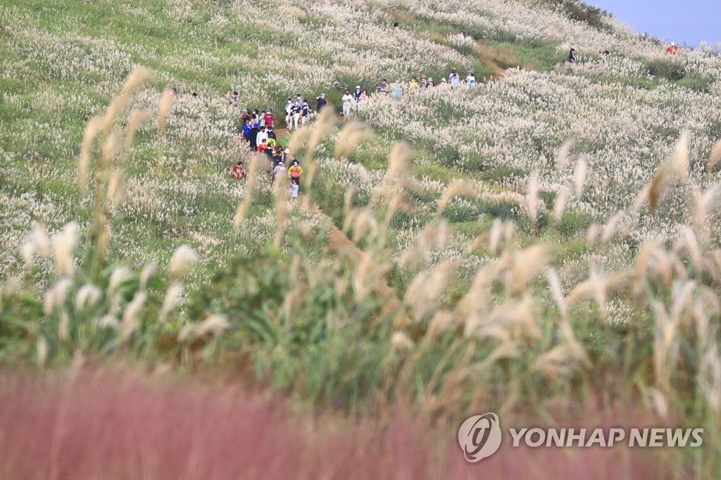 | ▲ 깊어가는 제주의 가을 (제주=연합뉴스) 제주시 애월읍 봉성리 새별오름을 찾은 관광객들이 활짝 핀 억새꽃과 함께 가을 정취를 즐기고 있다. [연합뉴스 자료사진] |