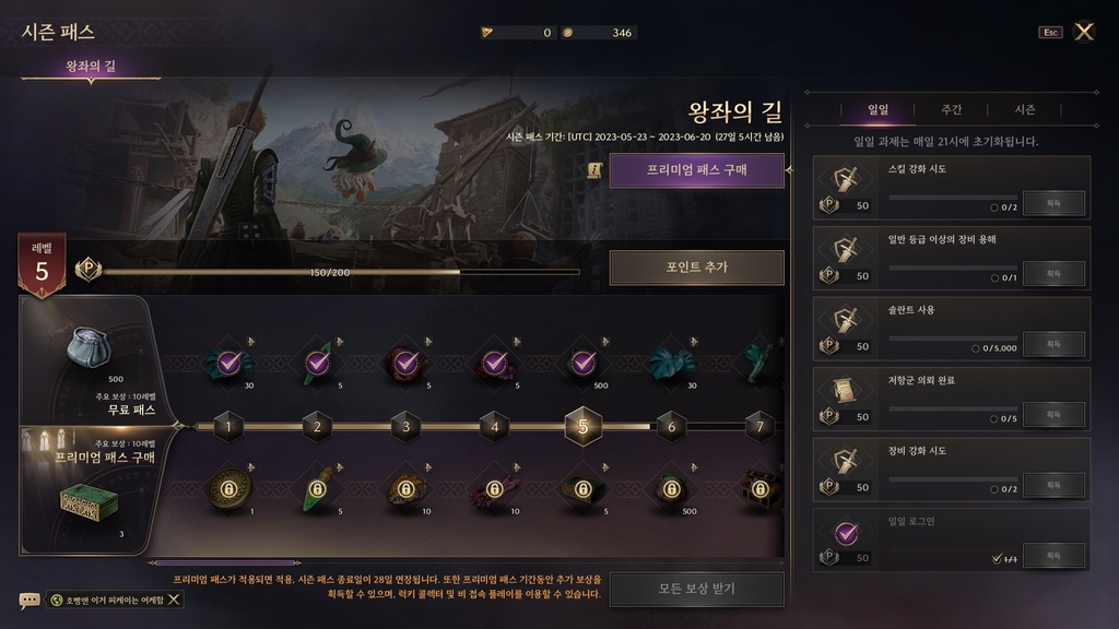 | ▲ '쓰론 앤 리버티'의 시즌 패스 콘텐츠 [쓰론 앤 리버티 플레이 화면 캡처] |