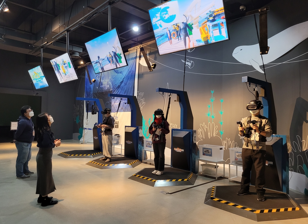▲ 국립해양문화재연구소 태안해양유물전시관은 가상 수중발굴 체험을 할 수 있는 '수중발굴 체험전시실'을 다음 달 1일부터 운영한다. 전시실은 체험자가 바닷속에서 유물을 발굴하고 인양하는 경험을 할 수 있는 '가상현실 체험존', 바다를 표현한 디지털 영상 쇼와 인터랙티브 요소를 즐길 수 있는 '수중발굴 실감영상실'로 구성된다. 가상현실 체험존은 키 130㎝ 이상인 관람객만 이용할 수 있으며, 현장에서 예약하면 된다. (서울=연합뉴스)