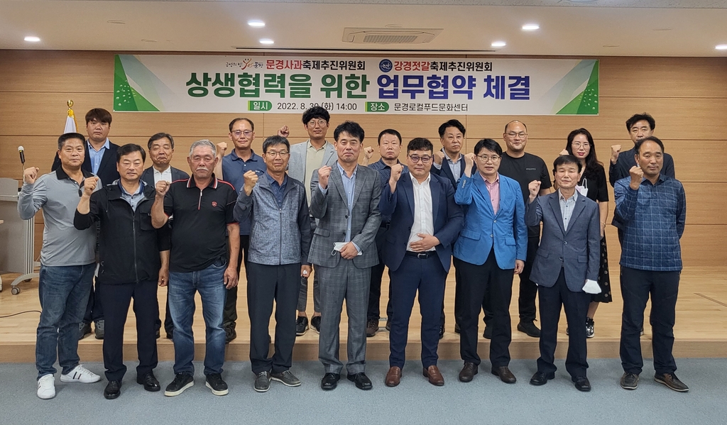 (문경=연합뉴스) 홍창진 기자 = 경북 문경시 사과축제 추진위원회는 충남 논산시 강경젓갈축제 추진위원회와 양 도시 축제 성공을 위해 상생 협력 업무협약을 했다고 31일 밝혔다.