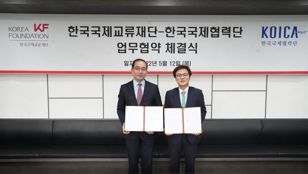 (서울=연합뉴스) 강성철 기자 = 한국국제교류재단(KF·이사장 이근)은 한국국제협력단(KOICA·이사장 손혁상)과 공공외교와 국제 개발협력의 효과적 사업 추진을 위해 업무협약(MOU)을 체결했다고 12일 밝혔다.