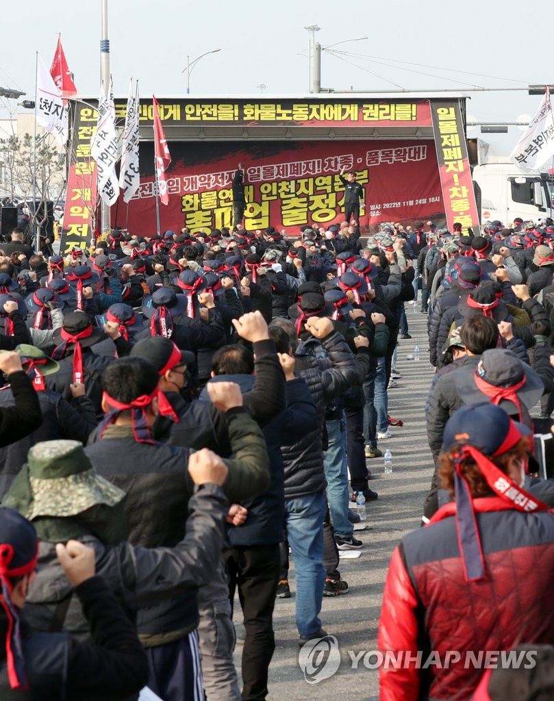 SEOUL, Nov. 24 (Yonhap) -- Unionized truckers in South Korea launched a nationwide strike Thursday, the second of its kind in less than six months, stoking worries over supply disruptions amid post-pandemic recovery efforts.