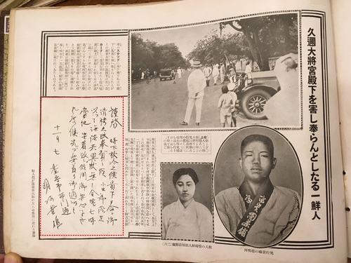 (상하이=연합뉴스) 차대운 특파원 = 일제강점기 대만에서 히로히토(裕仁) 일왕의 장인인 구니노미야 구니요시(久邇宮邦彦) 육군 대장 척살에 나서 당시 일본을 충격에 빠뜨린 조명하(1905∼1928년) 의사의 유일한 친필 기록물이 발견됐다.