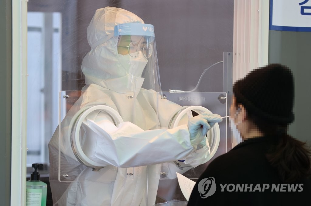 | ▲ A health worker conducts a screening test at a temporary screening center set up in front of Seoul Station in central Seoul on Jan. 23, 2021. (Yonhap) |