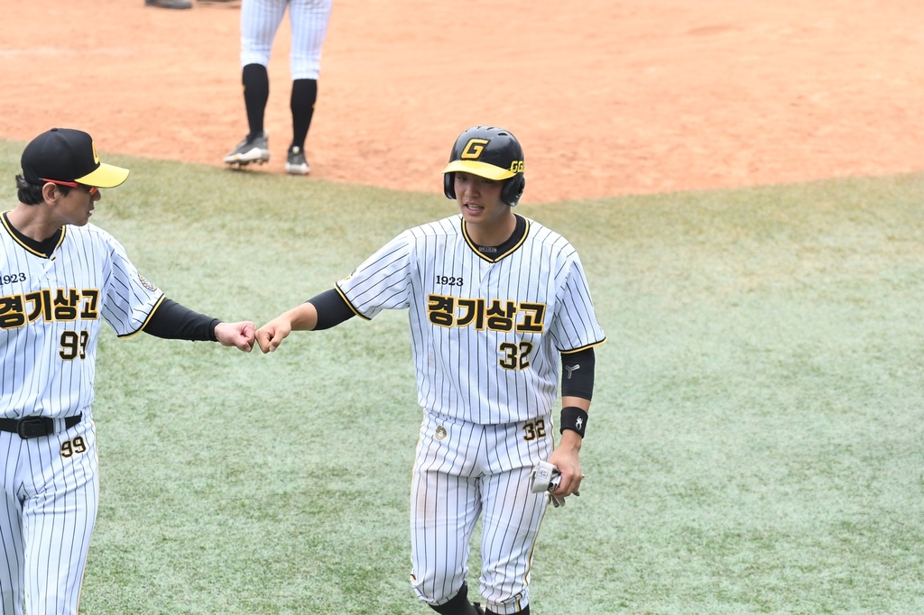 | ▲  Gyeonggi Commercial High School catcher Um Hyung-chan (R) is in action during a game, in this photo provided by Um on July 5, 2022. (PHOTO NOT FOR SALE) (Yonhap) |