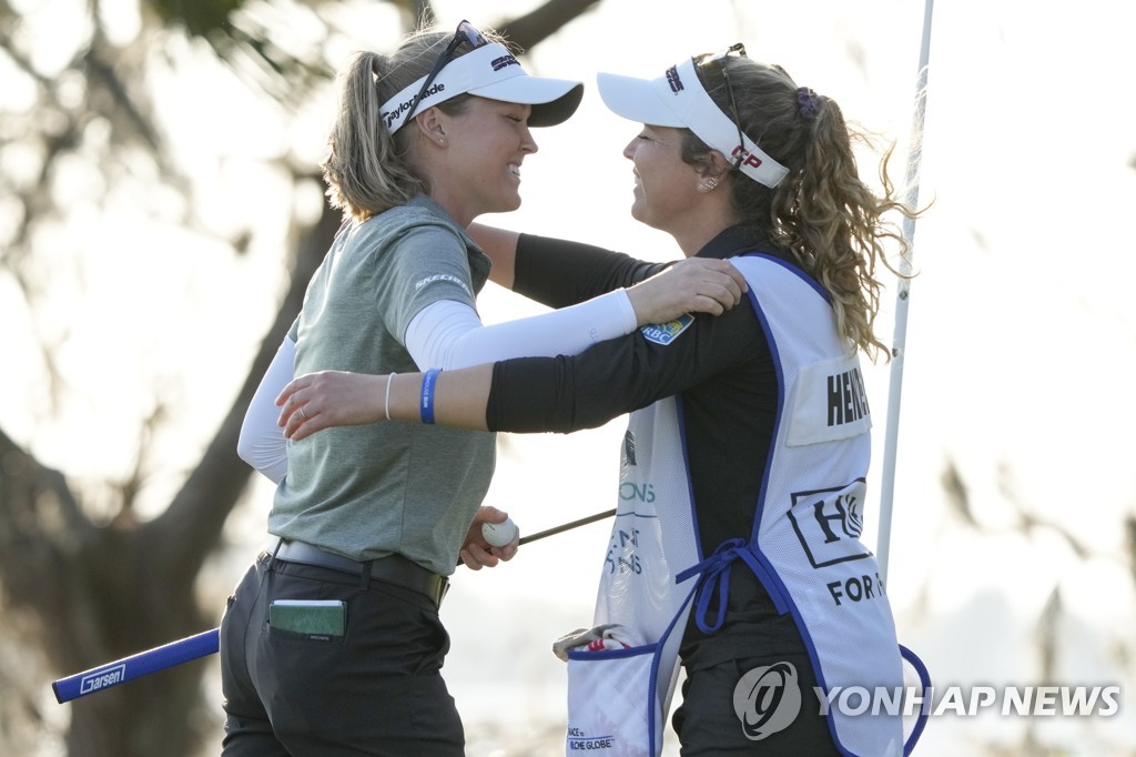 | ▲ 우승한 뒤 캐디인 언니 브리트니와 포옹하는 헨더슨(왼쪽) [AP=연합뉴스] |