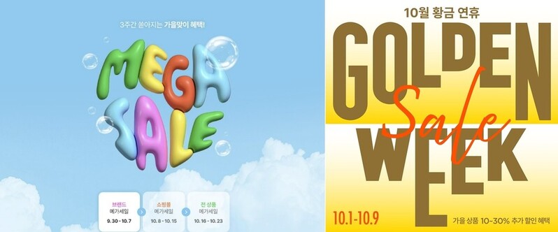 할인 행사에는 '골든세일위크(Golden Sale Week), '파워풀위크'(Power Full Week), '메가세일'(Mega Sale), '슈퍼페스타'(Super Festa) 등 영어가 쓰이기 일쑤다.