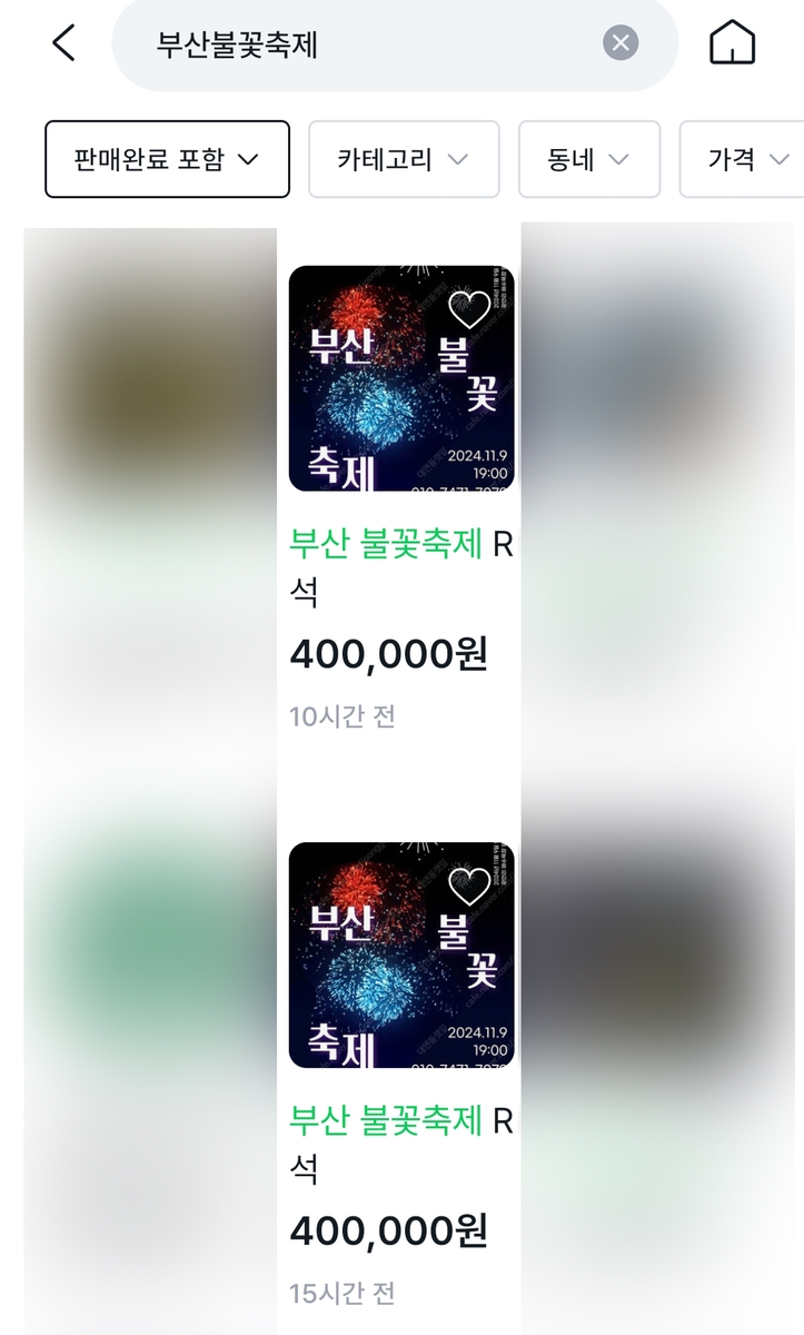 28일 중고품 거래와 관련한 한 사회관계망서비스(SNS)에서 '부산불꽃축제'를 검색해보면 웃돈을 붙인 티켓 매물을 손쉽게 확인할 수 있다.