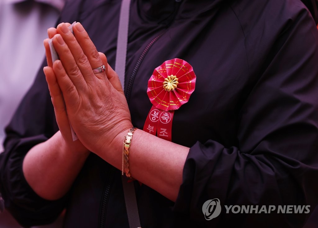 | ▲ 가지런히 모아 합장하고 (서울=연합뉴스) 서대연 수습기자 = 부처님오신날인 8일 한 시민이 서울 종로구 조계사에서 열린 봉축 법요식에서 불전함 앞에서 가지런히 손을 모아 합장하고 있다. 봉축 법요식은 공경하는 마음으로 축하의 뜻을 담아 진행하는 불교행사다. 2022.5.8 dwise@yna.co.kr |