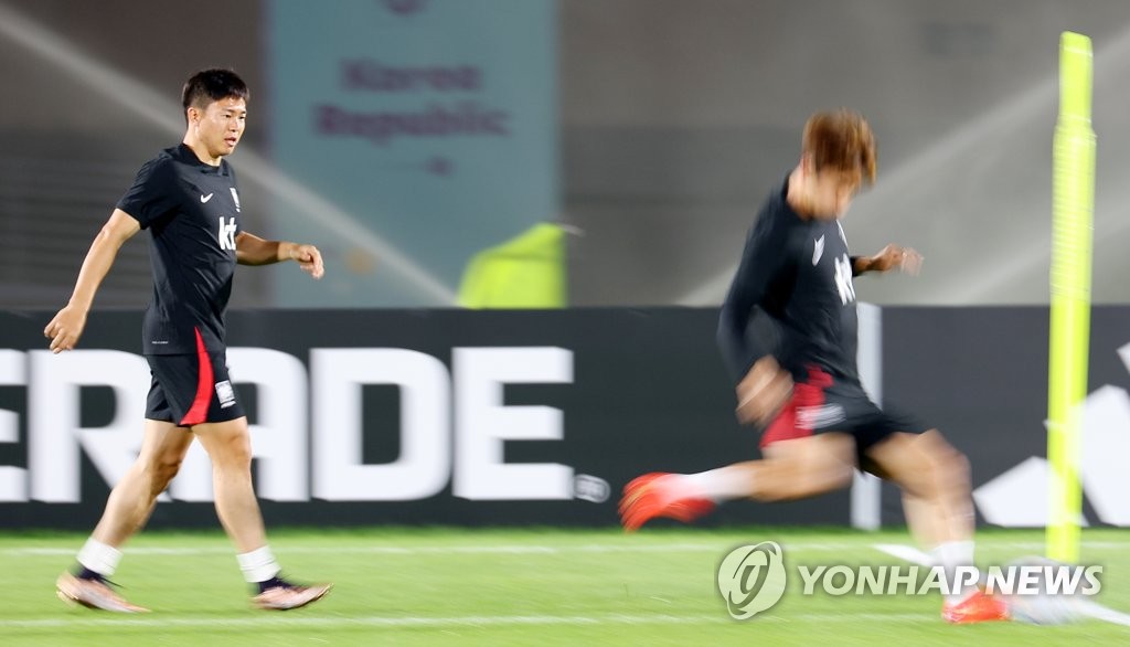 | ▲ 훈련하는 권창훈·김진수 (도하=연합뉴스) 김도훈 기자 = 2022 카타르 월드컵 대한민국 축구대표팀 권창훈(왼쪽), 김진수가 17일(현지시간) 카타르 도하 알에글라 훈련장에서 패스 훈련을 하고 있다. 2022.11.18 superdoo82@yna.co.kr |