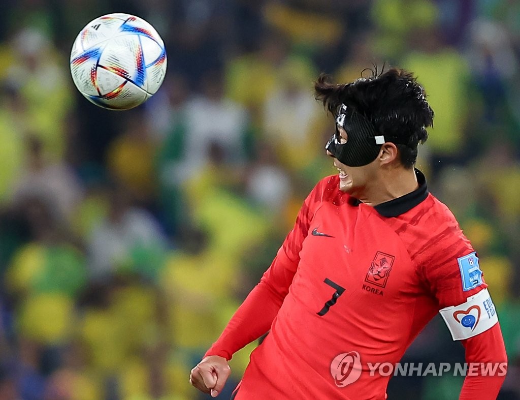| ▲ 헤더로 공 걷어내는 손흥민 (도하=연합뉴스) 김도훈 기자 = 6일(한국시간) 카타르 도하 974 스타디움에서 열린 2022 카타르 월드컵 16강전 대한민국과 브라질의 경기. 안면보호대를 착용한 대표팀 손흥민이 헤더로 공을 걷어내고 있다. 2022.12.6 superdoo82@yna.co.kr |