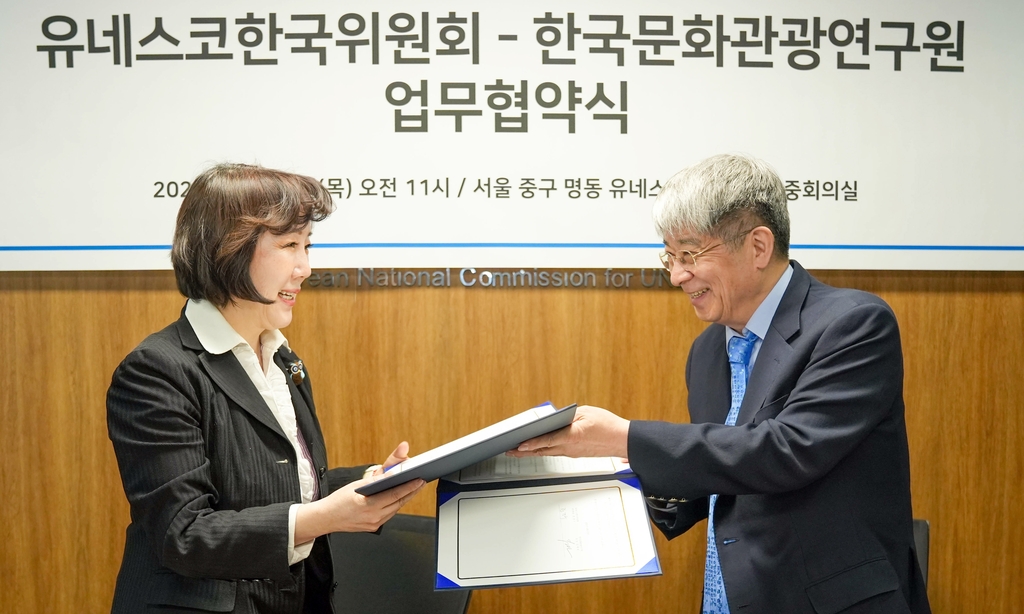 (서울=연합뉴스) 김호천 기자 = 유네스코한국위원회는 한국문화관광연구원과 문화 분야 지속 가능한 발전과 대한민국 유네스코 활동 기여를 위한 업무 협약을 체결했다고 14일 밝혔다.
