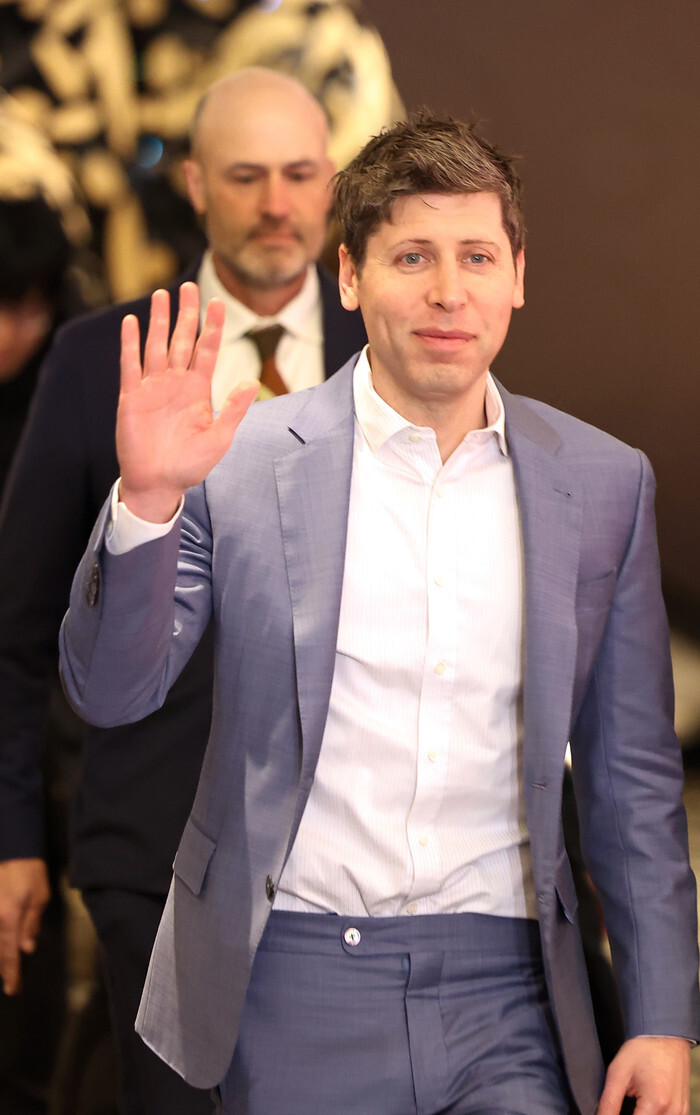 OpenAI CEO Sam Altman arrives for a press conference with South Korean tech giant Kakao Corp. at a Seoul hotel on Feb. 4, 2025. Kakao announced a partnership with OpenAI to use ChatGPT in its new artificial intelligence service, joining a global alliance led by the U.S. AI company amid intensifying competition in the global AI market. (Yonhap)