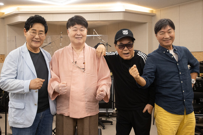 South Korean singers -- (from L to R) Yoon Hyung-joo, Song Chang-sik, Cho Young-nam and Kim Se-hwan -- pose for a photo prior to an interview in Seoul on Aug. 29, 2025, to promote a "C'est Si Bon Concert" tour of the country. "C'est Si Bon," the name of a music cafe located in Seoul's Myeongdong shopping district in the 1970s, was home to many big-name singers who staged live concerts there. (Yonhap)