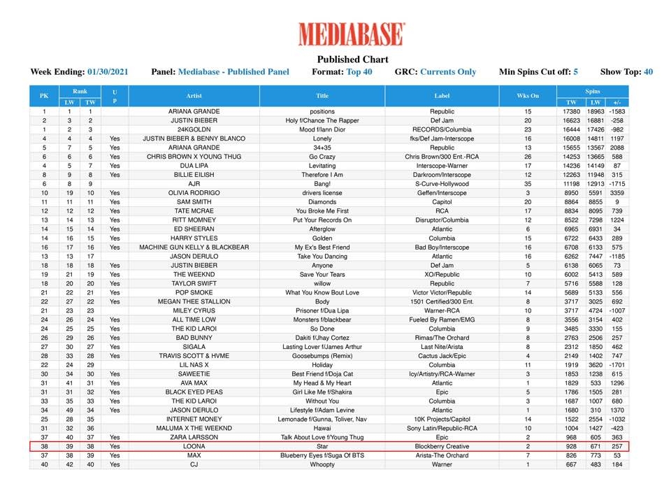 미디어베이스는 미국·캐나다의 라디오 방송 180여 개를 24시간 모니터링해 음원 재생 횟수를 집계한다.