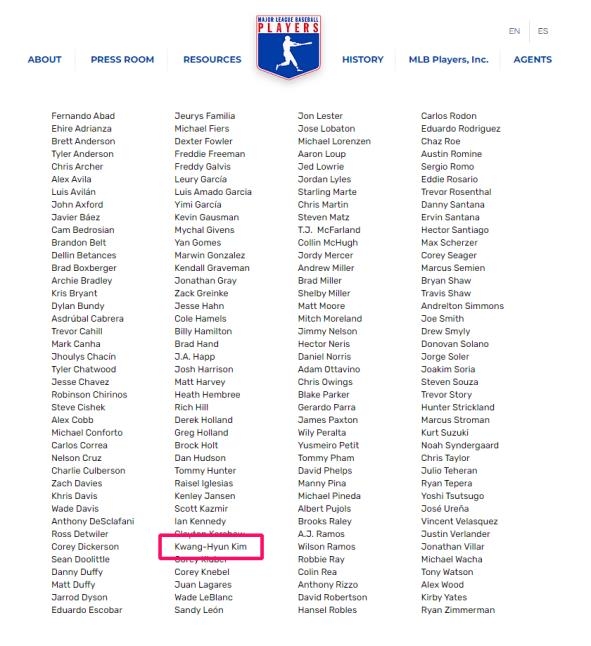 MLB 선수노조는 4일(한국시간) 김광현(33)을 포함한 MLB 자유계약선수(FA) 160명의 명단을 발표했다.