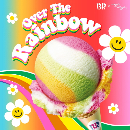 이와 함께 배스킨라빈스는 발랄하고 유쾌한 디자인으로 유명한 라이프스타일 브랜드 '위글위글'(Wiggle Wiggle)과 협업한 '오버 더 레인보우 케이크'도 새롭게 선보인다.