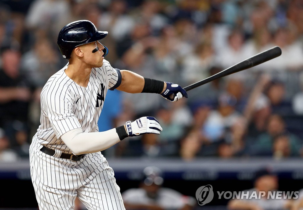 | ▲ 5회 좌중월 1점 아치를 그리고 타구를 바라보는 저지 [게티이미지/AFP=연합뉴스] |