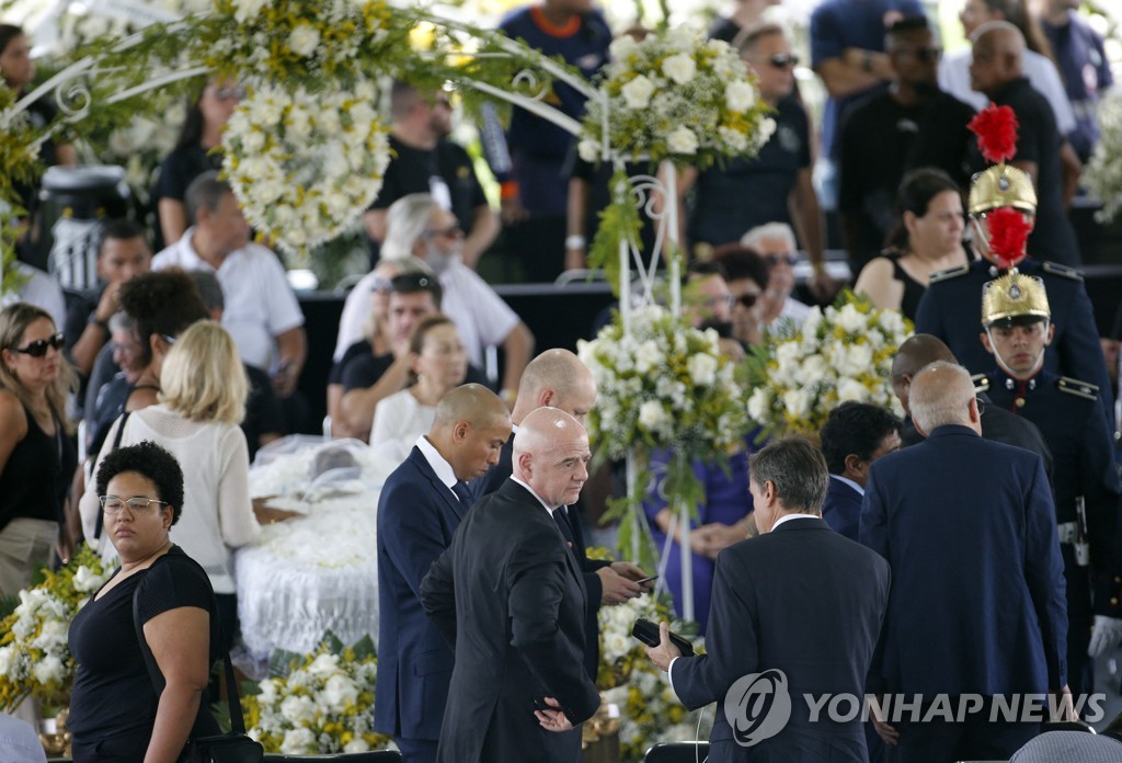 축구장에서는 펠레 아들 에디뉴와, 펠레 이후 산투스에서 등번호 10번을 썼던 축구선수 제 호베르투 등이 센터 서클까지 운구했다.