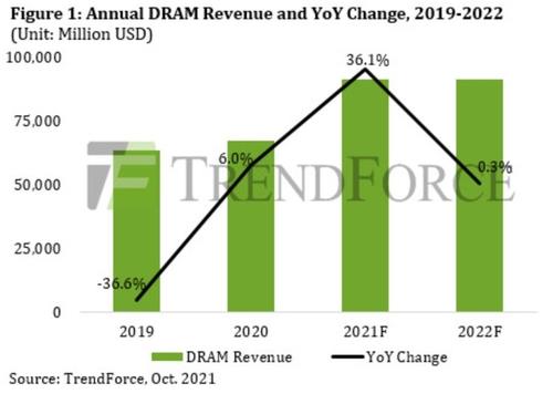 | ▲ The graph provided by TrendForce shows the projection of annual DRAM revenues. (PHOTO NOT FOR SALE) (Yonhap) |