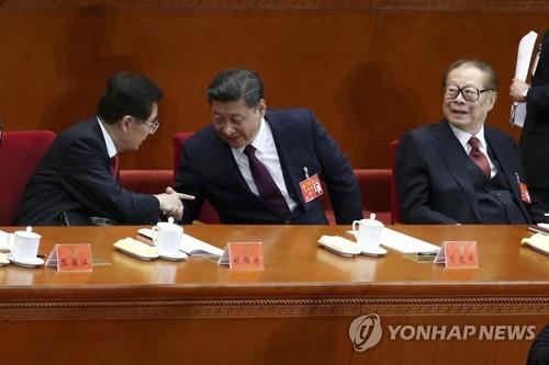 | ▲ 시진핑(중앙), 장쩌민(우), 후진타오 2017년 10월18일 제19차 당대회에서 나란히 앉은 시진핑과 장쩌민, 후진타오 |