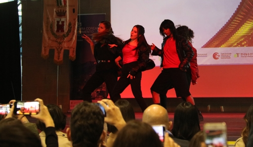 올해 'K-팝 월드 페스티벌' 이탈리아 대회의 보컬·댄스 부문에서 각각 준우승한 현지 아마추어팀이 공연을 열었다.