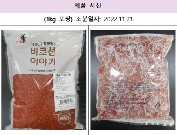 해당 제품은 식품소분업체인 주식회사 한성식품(경기 포천 소재)이 소분·판매한 고춧가루 제품으로, 식중독균인 클로스트리디움 퍼프린젠스 기준 부적합으로 확인됐다.