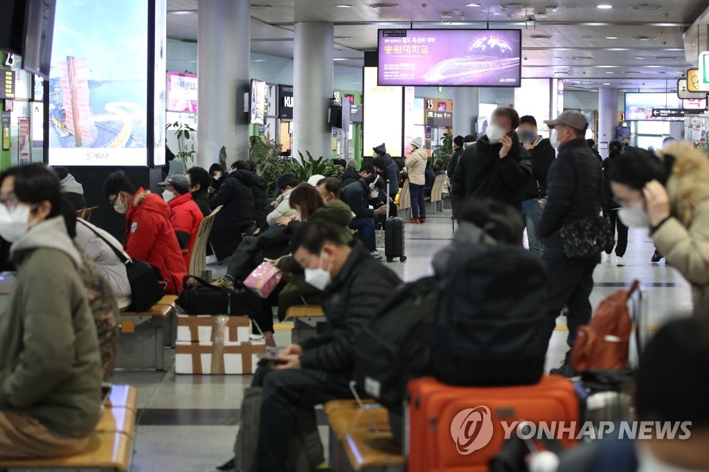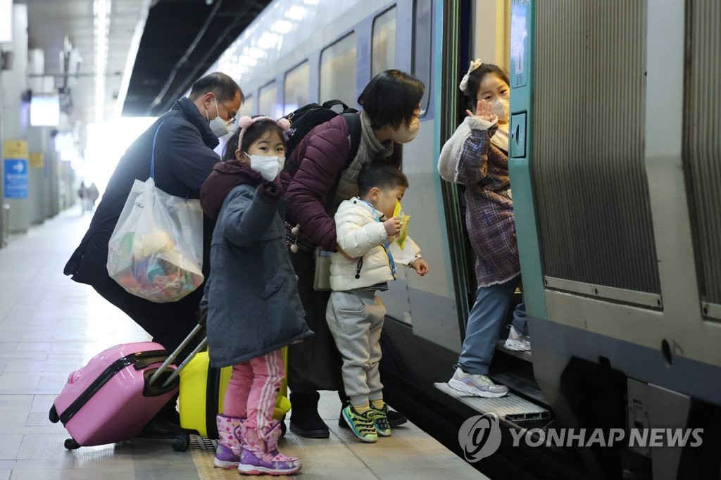 | ▲ 귀성길 떠나는 대가족 (서울=연합뉴스) 임화영 기자 = 설 연휴를 하루 앞둔 20일 오전 서울역에서 부부가 자녀들과 함께 귀성 열차에 오르고 있다. 2023.1.20 hwayoung7@yna.co.kr |
