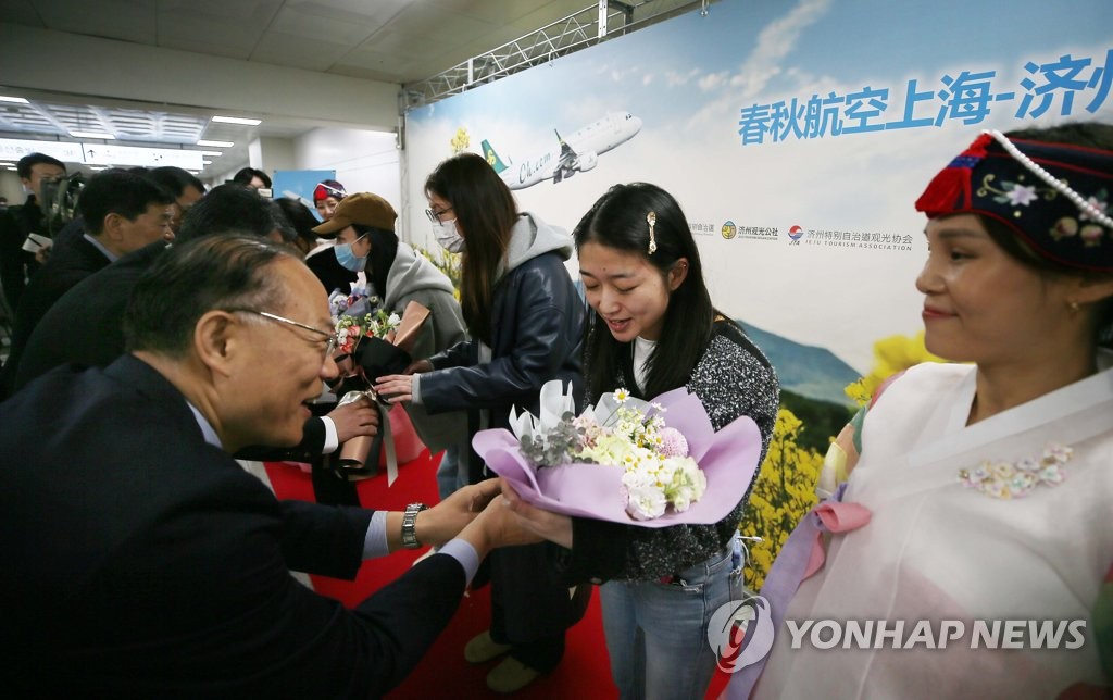 | ▲ 3년 만에 재개 제주-상하이 노선 "환영합니다" [연합뉴스 자료사진] |