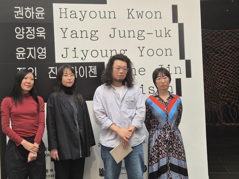| ▲ (서울=연합뉴스) 황희경 기자 = 국립현대미술관 서울관 '올해의 작가상 2024' 전시에 참여한 작가들이 24일 기자간담회에서 포즈를 취하고 있다. 왼쪽부터 제인 진 카이젠, 윤지영, 양정욱, 권하윤. 전시는 25일 개막해 내년 3월23일까지 계속된다. 2024.10.24.zitrone@yna.co.kr |