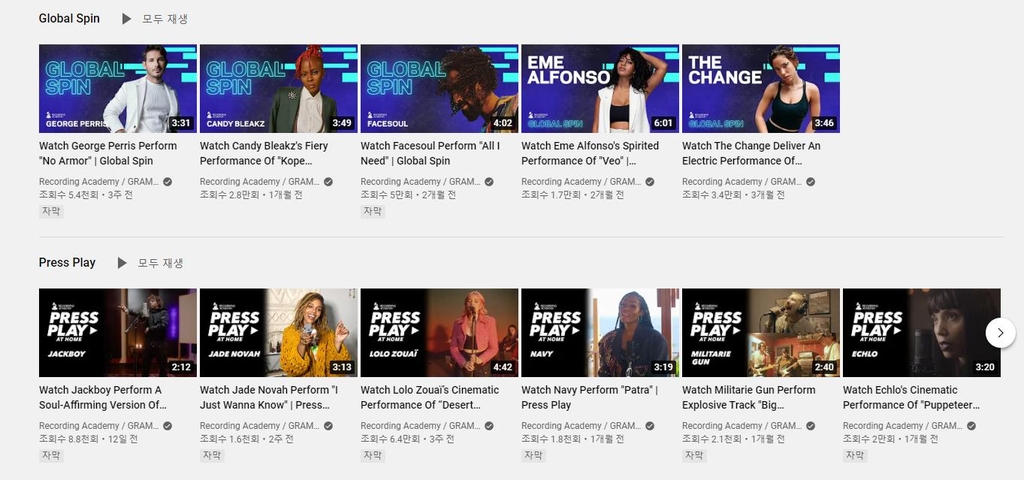 | ▲ 그래미 글로벌 스핀 시리즈 [레코딩 아카데미 유튜브 캡처. 재판매 및 DB 금지] |