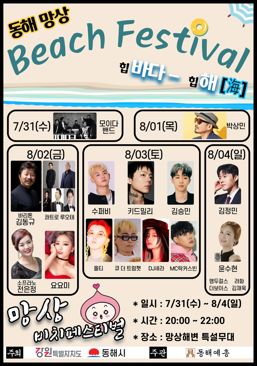 31일부터 8월 4일까지 망상해변 특설부대에서는 동해 망상 비치 페스티벌 힙바다-힙해가 열린다.