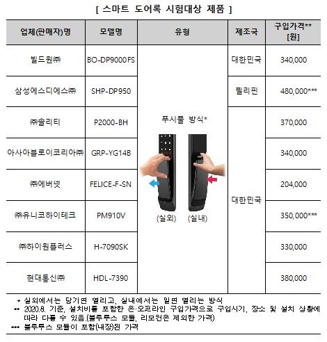 | ▲ 스마트 도어록 시험 대상 제품 [한국소비자원 보도자료 캡처. 재판매 및 DB 금지] |