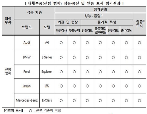 성능과 품질 인증 사항 표시 역시 모든 대체부품이 관련 기준에 적합했다.