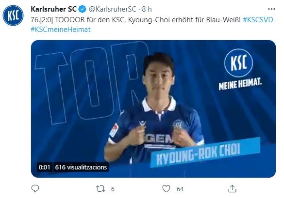 | ▲ 최경록의 득점 소식을 알리는 카를스루에 트위터 [카를스루에 트위터 캡처. 재판매 및 DB 금지] |