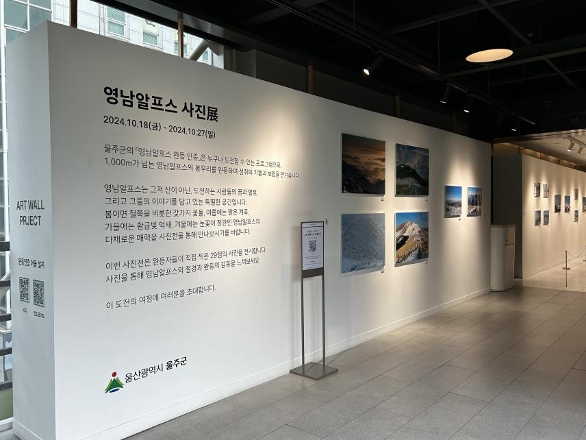 본관 2층과 별관을 연결하는 통로를 활용해 진행되는 이번 전시는 울주군이 추진하는 영남알프스 완등 인증사업의 인지도를 높이고, 영남알프스의 자연과 아름다움을 홍보하기 위해 마련됐다.