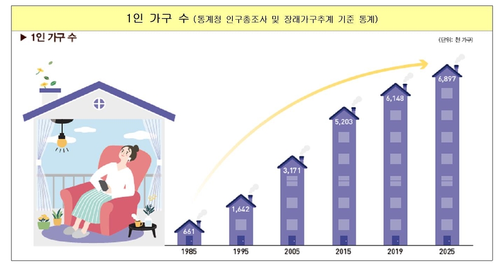 1인 가구는 2025년에는 689만7천가구에 이를 것으로 전망된다.